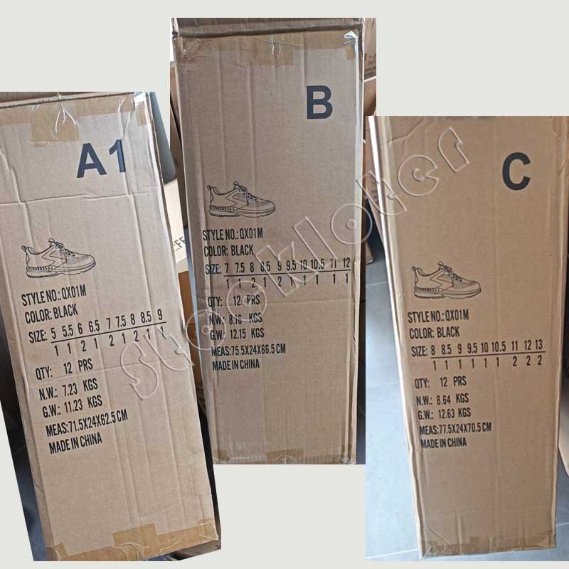 أحذية رياضية للرجال تحتوي على 24,158 زوجًا في المجموع، بنمطين من الألوان و6 مقاسات، وقائمة التعبئة التي سيتم ذكرها