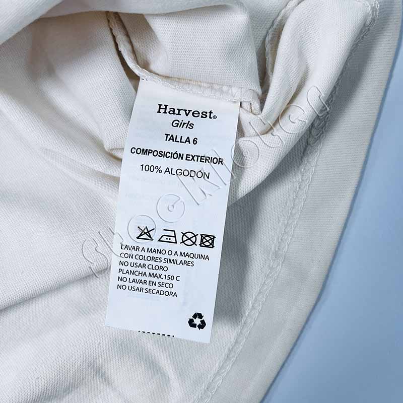 Fabric: Side seamed knitted fabric, 100% cotton 150~160 GSM