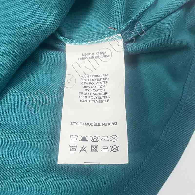 Fabric: Side seamed knitted fabric, 65% polyester 35% cotton, 250~260 GSM