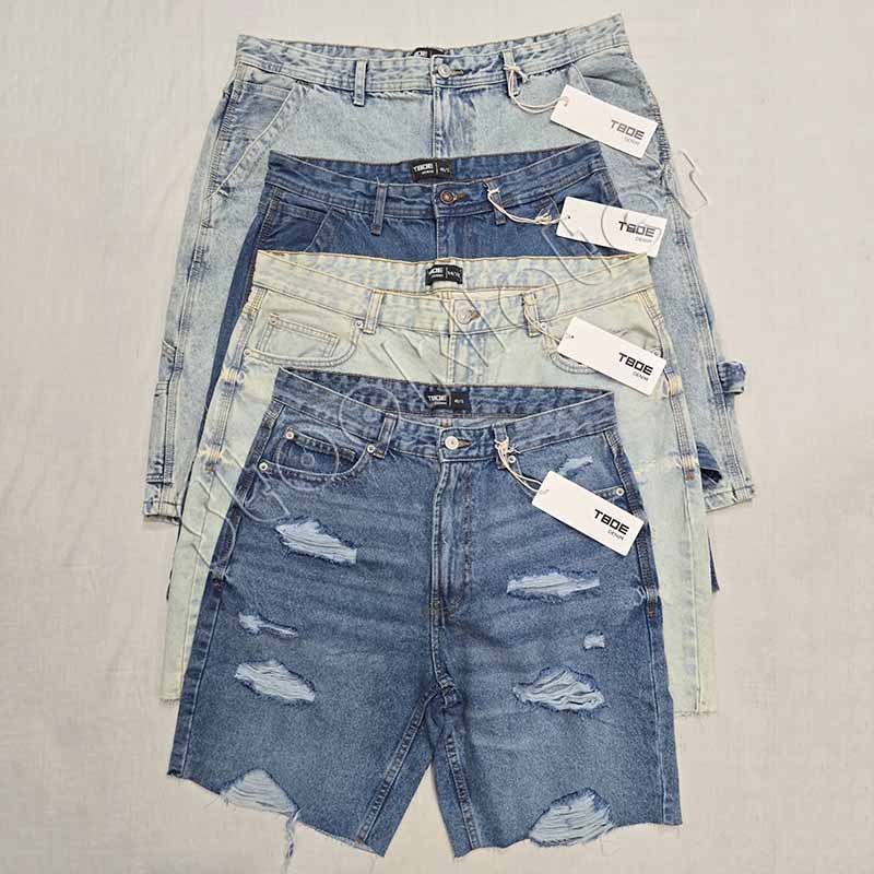 Mens cotton denim casual jeans shorts with 16,724 pcs in total, 2 styles and 2 colors for each. Each color has 5 sizes. Contact us for handsome price.