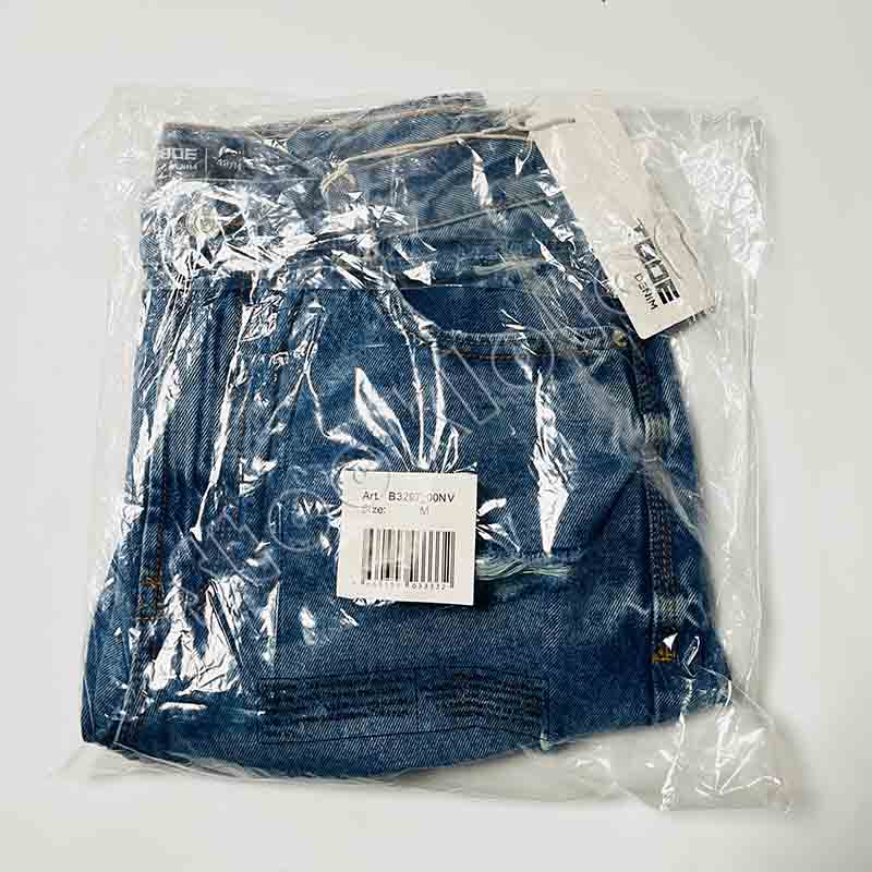 بنطال جينز رجالي طويل من قماش الدنيم المرن، متوفر بـ ٤٢٤٠ قطعة، بثلاثة ألوان وخمسة مقاسات. تواصل معنا للحصول على سعر مميز.