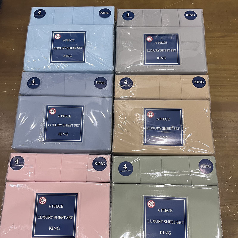 ملاءات سرير قطنية فاخرة، 4 قطع، ملاءات مسطحة وأغطية وسائد، متوفرة في المخزون بـ 20,000 قطعة، بدون علامة تجارية، صُنعت خصيصًا للولايات المتحدة الأمريكية وأوروبا، بعشرة ألوان مصبوغة سادة، مقاس كينج فقط، معبأة بشكل سليم، 118.3 متر مكعب. تواصل معنا اليوم للحصول على سعر مميز.