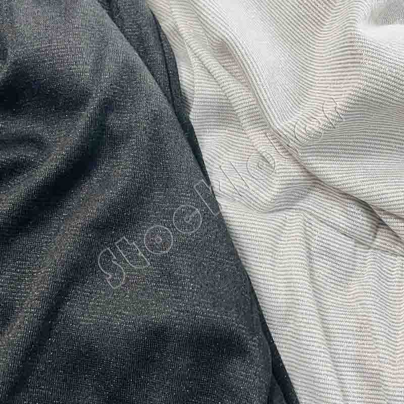 Fabric: Eco friendly knitted fabric with silver threading, 60% cotton 35% polyester 5% spandex