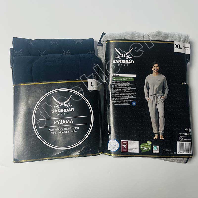 أطقم بيجامات نوم شتوية رجالية من القطن المحبوك، متوفرة بـ 48,304 طقم، صُنعت في الأصل لمتاجر ليدل في أوروبا. متوفرة بلونين وأربعة مقاسات. تواصلوا معنا للحصول على أفضل الأسعار.