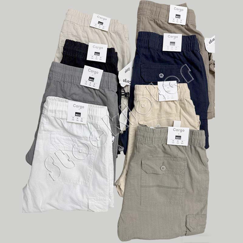 شورتات كارغو رجالية من القطن المطاطي، متوفرة بـ ٢٣٤٥٨ قطعة، بأربعة ألوان وسبعة مقاسات. تواصلوا معنا للحصول على أفضل الأسعار.